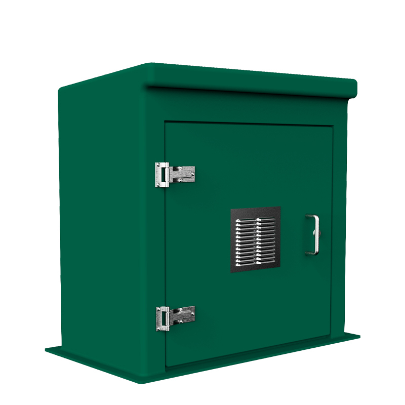 All enclosures have a tough weather resistant polyester gel coat outer, reinforced with a GRP laminate incorporating an encapsulated polyurethane foam core to provide insulation. External colour options are RAL6005 Green or BS 00A05 Industrial Grey. Other colours are available on request.
