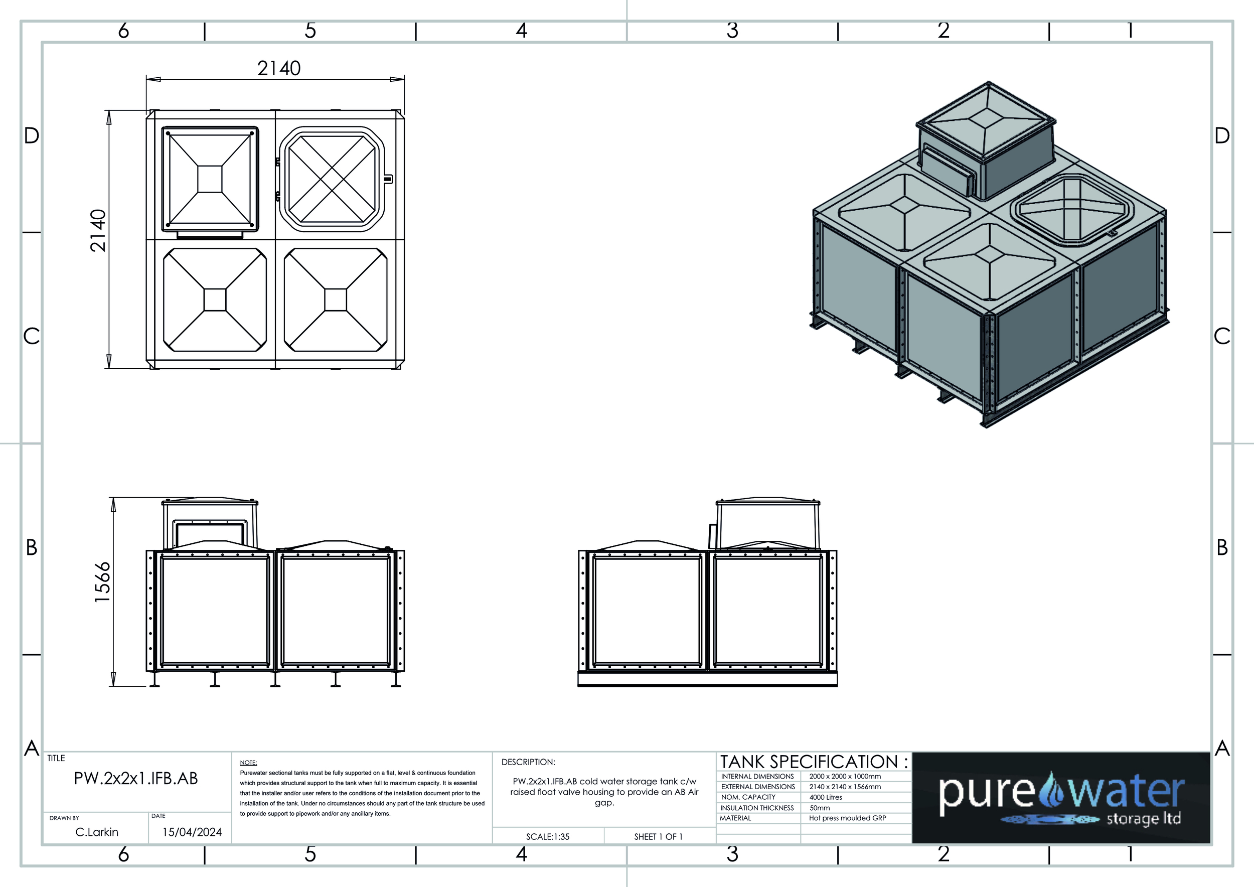 Insulated or None insulated available , Kiwa REG4 & WRAS approved for use with potable water. Suitable for a variety of applications including process cooling, rainwater harvesting and many other systems and processes where containment of water is necessary. All gaskets, seals and fixings for assembly are included. Available for self-assembly, or on site assembly is available by fully trained engineers for an additional cost.
