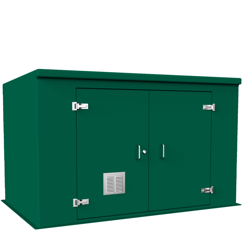 All enclosures have a tough weather resistant polyester gel coat outer, reinforced with a GRP laminate incorporating an encapsulated polyurethane foam core to provide insulation. External colour options are RAL6005 Green or BS 00A05 Industrial Grey. Other colours are available on request.